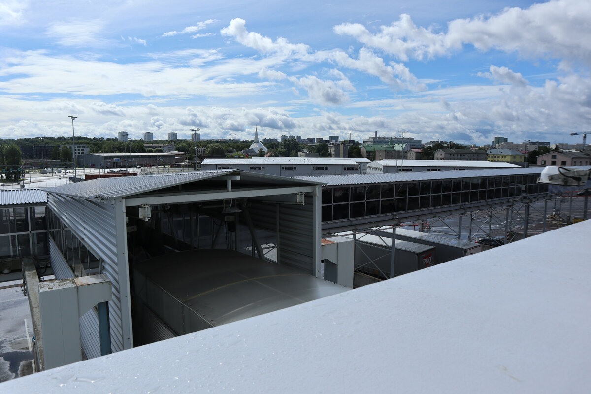 Итак, приходите вы в терминал этого ТаллинК, который находится в стороне от центра Стокгольма. От ближайшего метро надо идти минут 15. Последние сотни метров вы идёте вот по таким пешеходным галереям.
